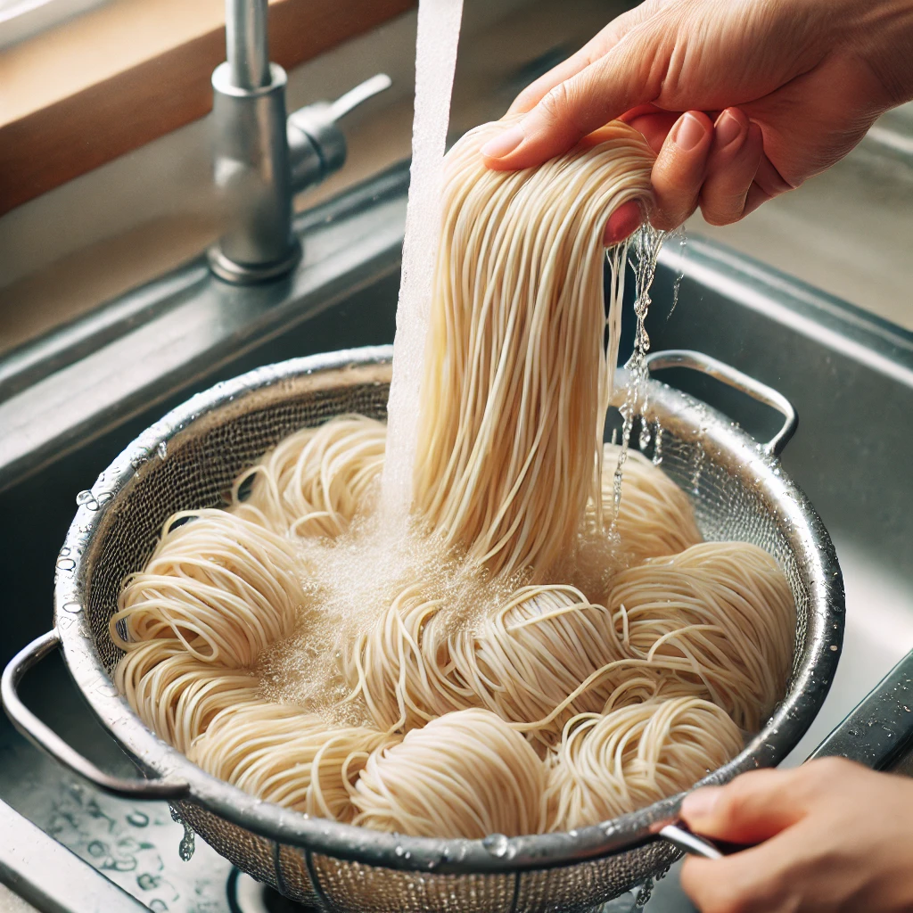 - 찬물에 헹궈 쫄깃하게 만들어 주세요.